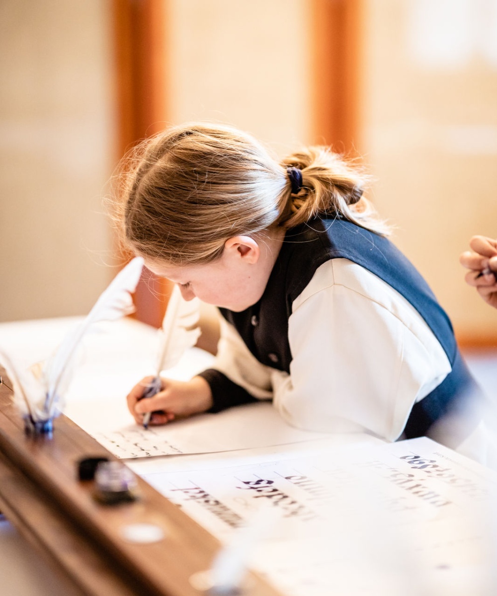 Ein besonderer Höhepunkt ist die mittelalterliche Schreibstube. Hier erfahren die Kinder, wie Mönche vor Jahrhunderten Bücher mit Feder und Tinte von Hand schrieben, lange bevor es den Buchdruck gab. Dabei dürfen sie selbst ausprobieren, wie mühsam und zugleich faszinierend das Abschreiben und Verzieren einst war.